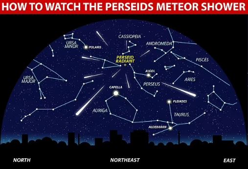 La 24ème plus grande constellation du ciel, Persée, est l’endroit d’où ces météores semblent émerger, d’où le nom de “pluie de météores des Perséides”.