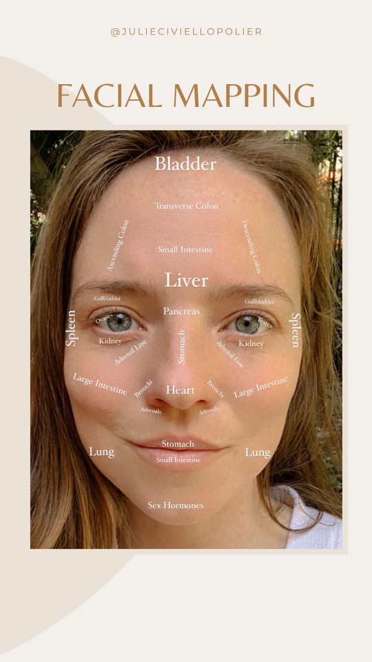 Selon la méthode chinoise des 5 éléments, chaque zone du visage correspond à un organe différent.